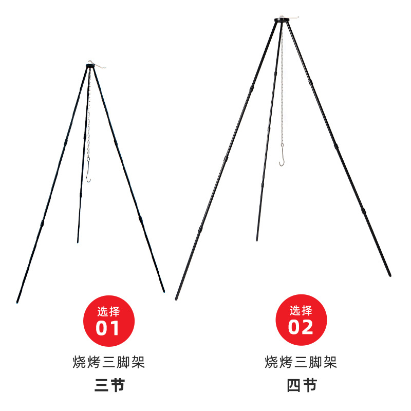 Outdoor bold 4 bagian tripod camping, peralatan Kemah portabel, braket gantung pot, piknik, barbekyu, lipat, tiga