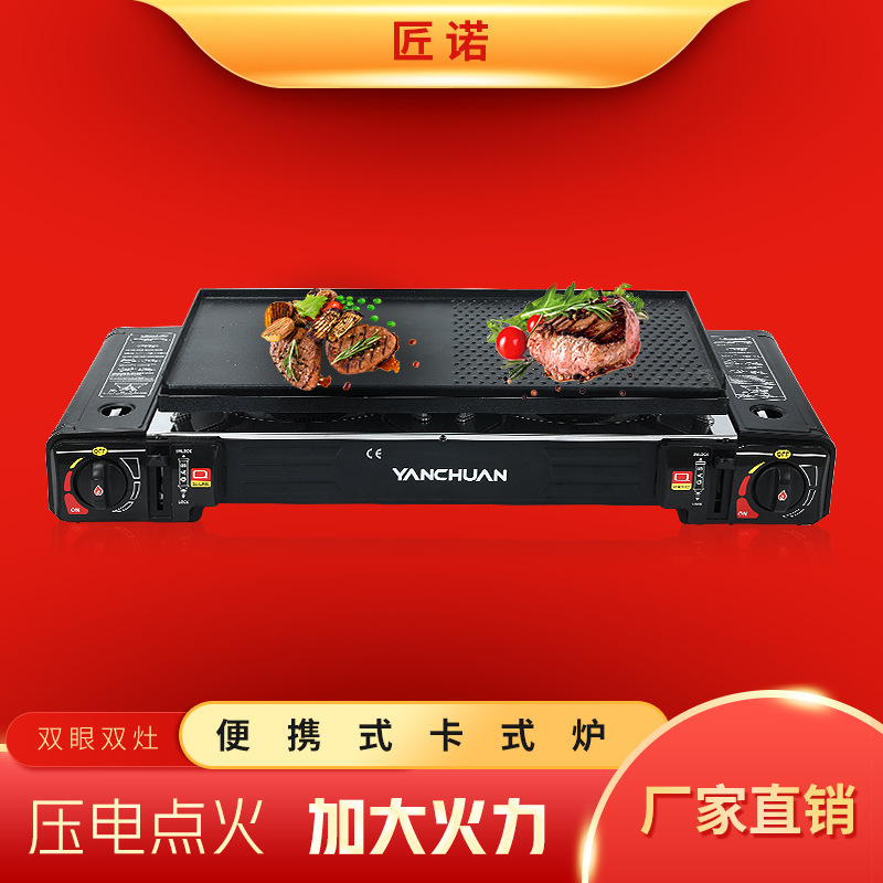 Kompor gas kaset kompor ganda, kompor gas magnetik portabel, kompor gas luar ruangan, kompor gas kepala ganda