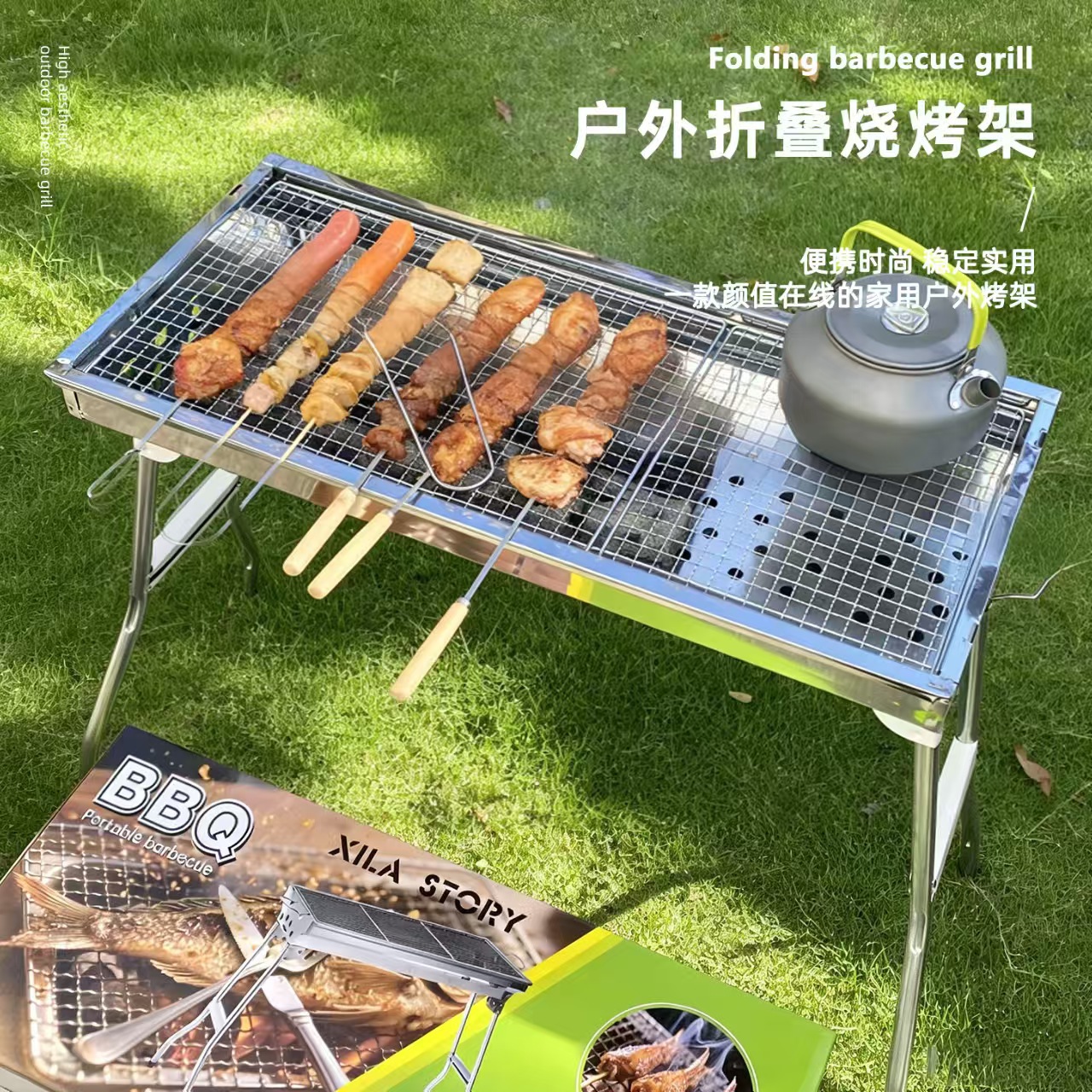 Luar Ruangan Stainless Steel Barbekyu Rak Barbekyu Berkemah Luar Ruangan Portabel Lipat Barbekyu Berkemah Barbekyu