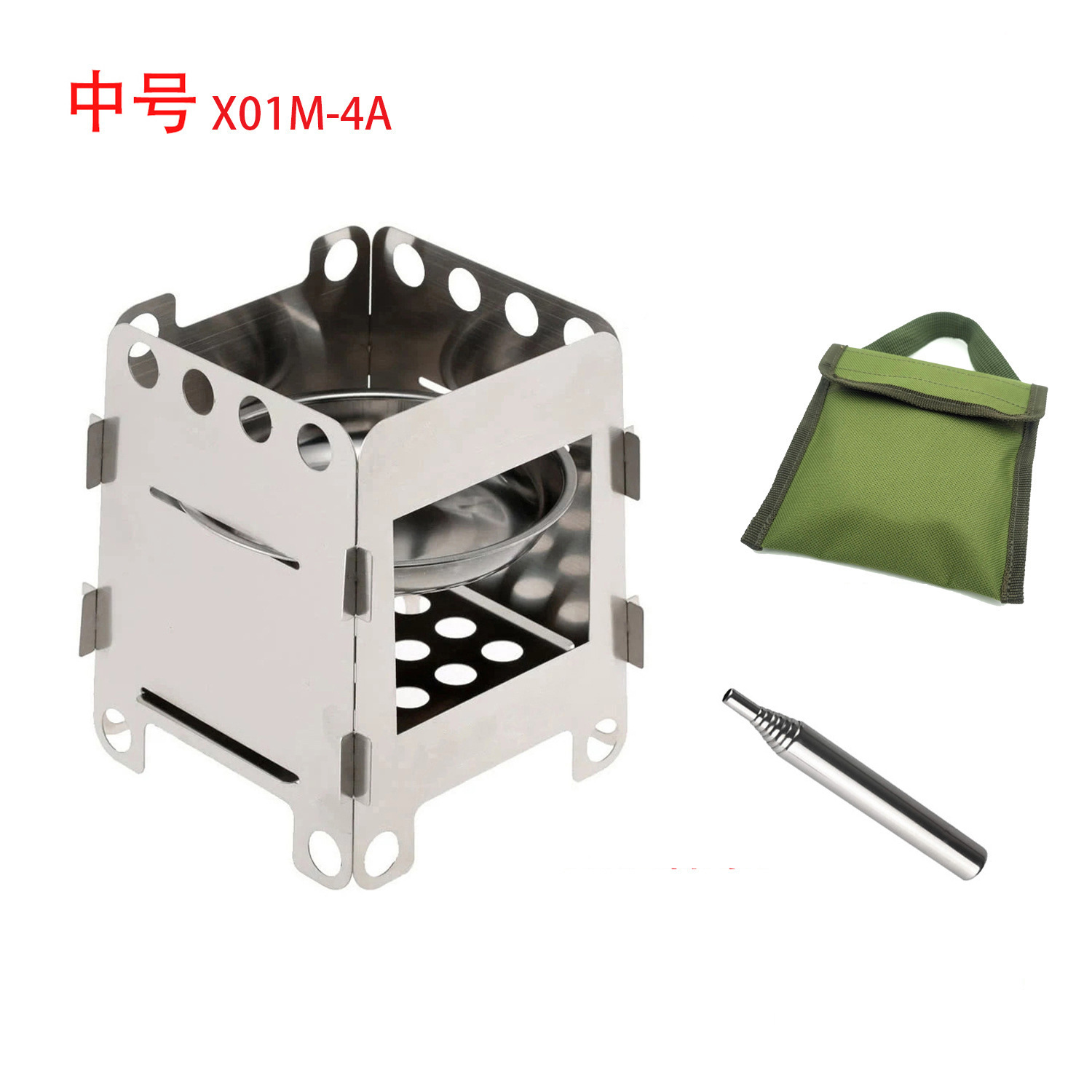 Produsen baru kompor kayu bakar lipat baja tahan karat kompor kartu luar ruangan portabel multi-fungsi kompor pemanas berkemah piknik