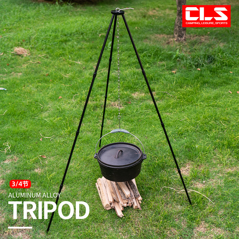 Tripod gantung untuk berkemah, perlengkapan piknik portabel berkemah berkemah luar ruangan 4 bagian, braket panci gantung, tripod barbekyu piknik