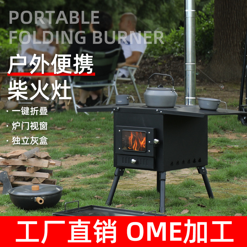 Kompor kayu bakar berkemah luar ruangan, kompor pemanas kayu bakar, tenda pencahayaan piknik, Jendela API, kompor kartu lipat, kompor stainless steel