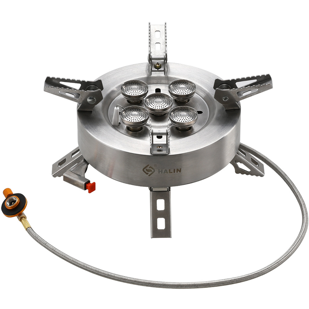 Baru kompor piknik luar ruangan kompor mungkin Lima kepala api dahsyat kompor gas baja tahan karat kompor tahan angin terpisah
