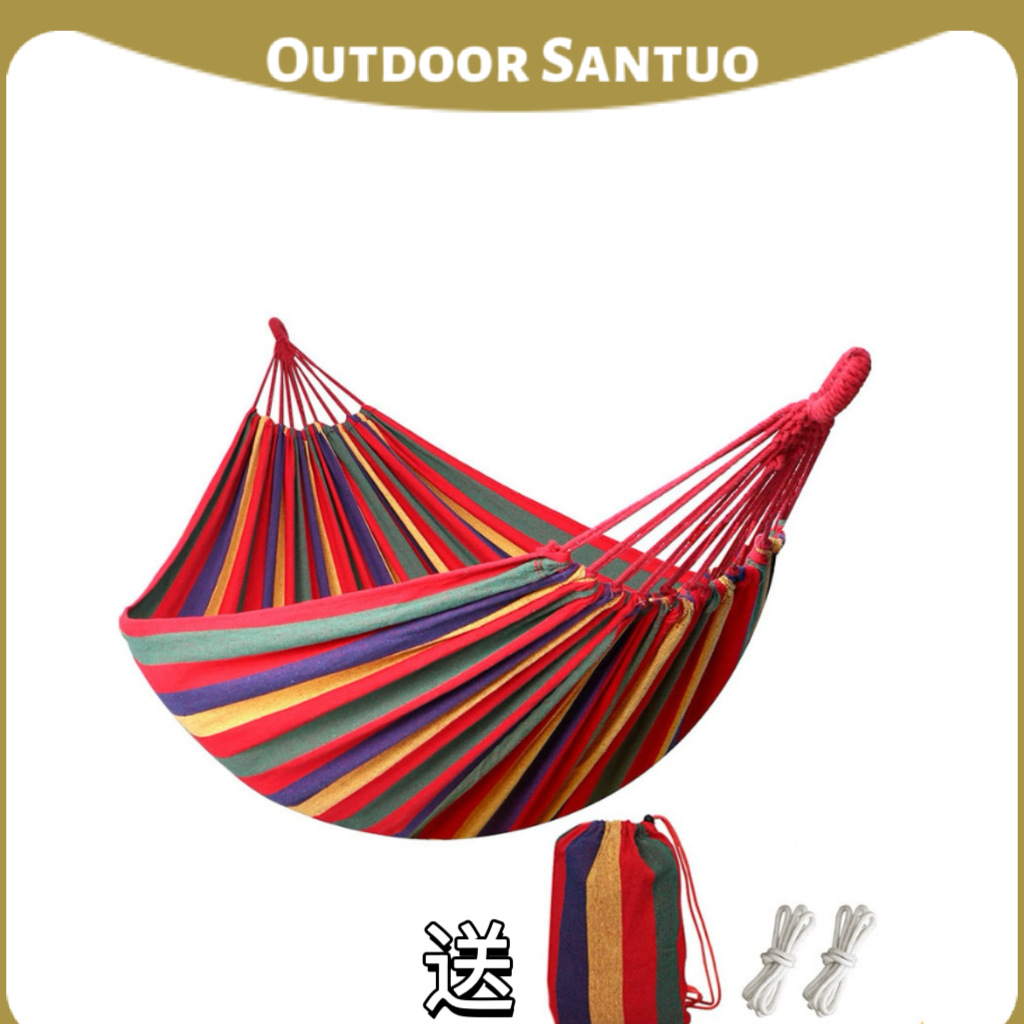 Tempat tidur gantung Kemah luar ruangan dewasa, tempat tidur gantung kanvas tebal tunggal anti-flip bergaris untuk penggunaan luar ruangan