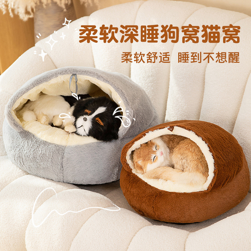 Tempat tidur gantung hewan piaraan, tikar hewan piaraan sarang kucing tebal semi-tertutup cangkang mewah hangat musim gugur dan musim dingin