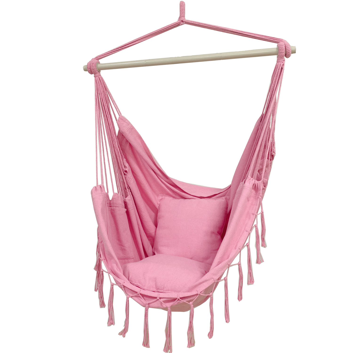 Hanging Chair Penyangga Pipa Besi Lipat Ayunan Luar Ruangan Kursi Gantung Ayunan Warna Merah Muda Kemasan Kotak Dalam