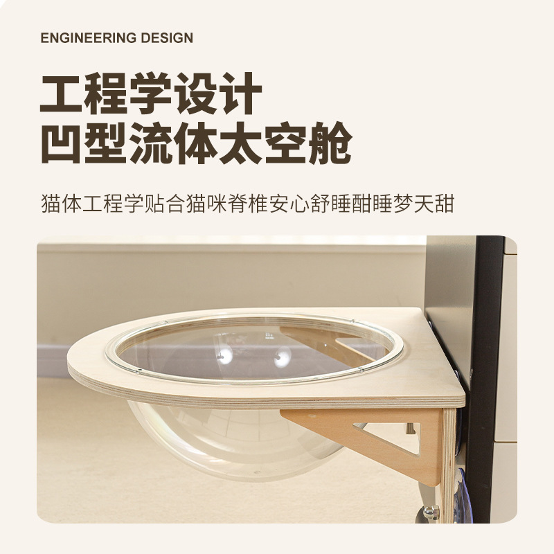 Tempat Tidur Gantung Kucing Kayu Solid Kucing Tempat Tidur Gantung Kaca Jendela Hewan Peliharaan Kucing Gantung Pengisap Kucing Kapsul Ruang Perlindungan Kayu