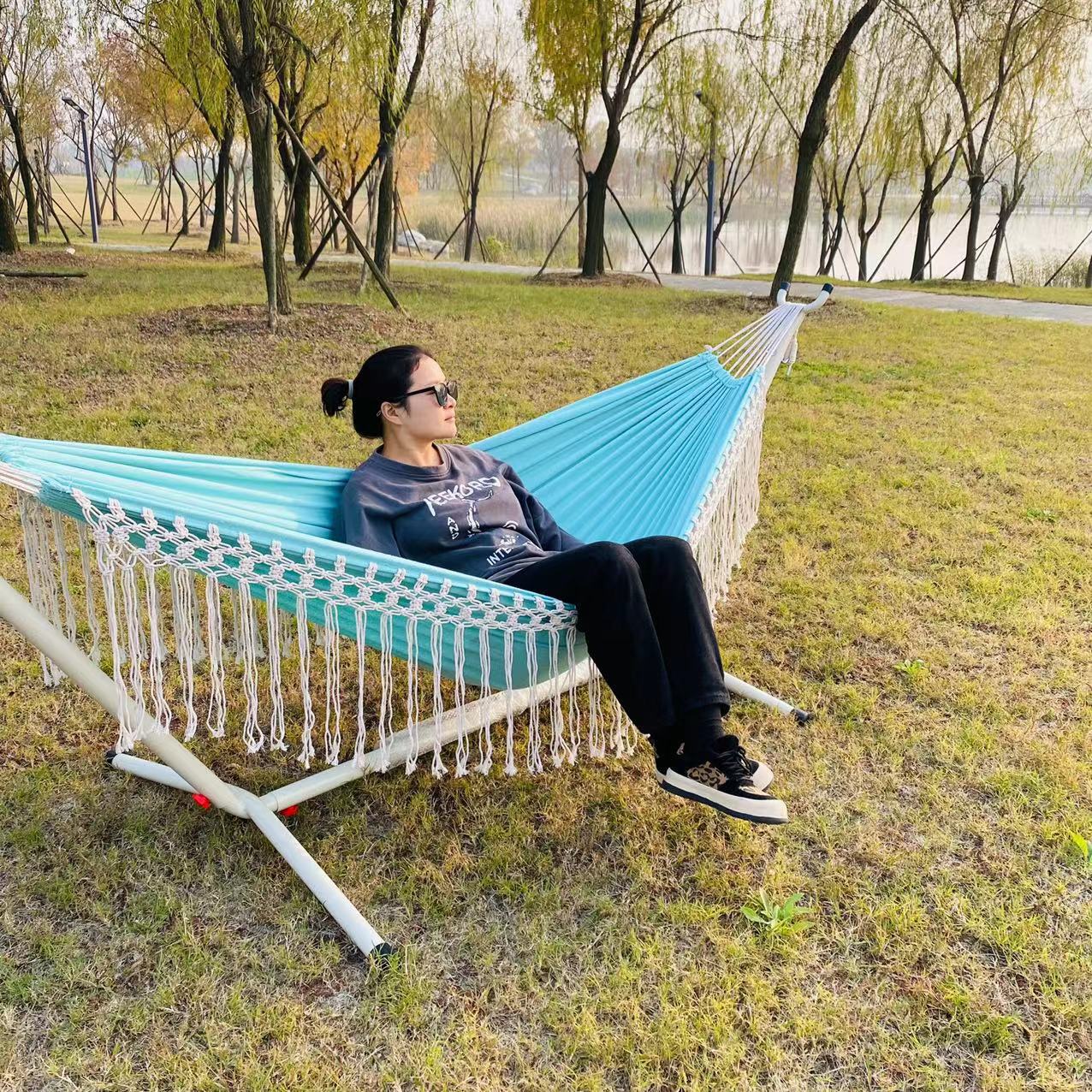 Tempat Tidur Gantung Luar Ruangan Kursi Gantung Ayunan Orang Dewasa Kamar Tidur Asrama Siswa Dalam Ruangan Kanvas Tebal Anti Balik Orang Ganda