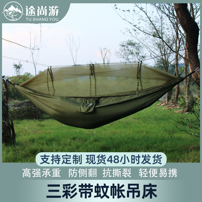 Tempat tidur gantung luar ruangan anti-nyamuk jaring enkripsi parasut ganda 210T sabuk nilon jaring nyamuk kain piknik Kemah