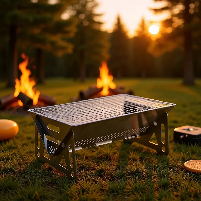 Amazon kompor barbekyu lipat baja tahan karat luar ruangan kompor kayu bakar portabel rak barbekyu berkemah kompor arang meja api grosir