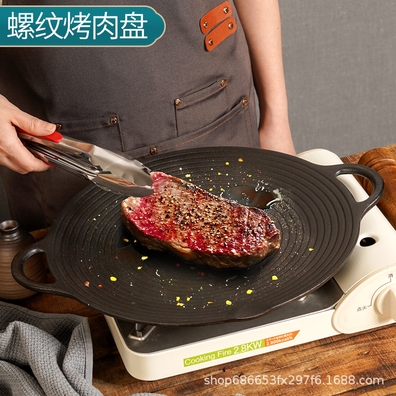 Piring Panggang Besi Cor 203 Panci Penggorengan Barbekyu Luar Ruangan 202 Garis Persegi Panjang Tebal Tanpa Lapisan Plat Besi Cor Telinga Ganda