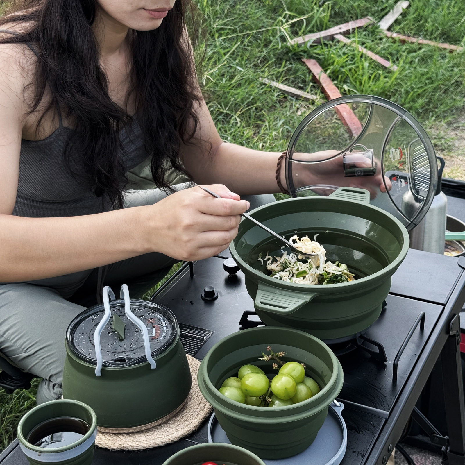 Amazon Hot Sale Peralatan Masak Portabel 3-5 Orang Berkemah 304 Set Peralatan Masak Luar Ruangan Lipat