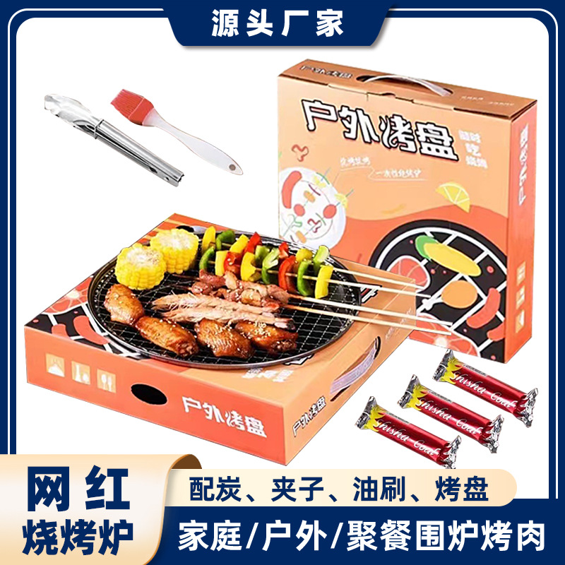 Panggangan sekali pakai panggangan panggangan piknik peralatan luar ruangan portabel rumah tangga kecil arang buah set tanpa asap
