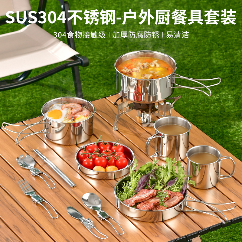 304 Stainless Steel Outdoor Cooker Peralatan Makan Lipat Portabel untuk Berkemah Dapur Kecil