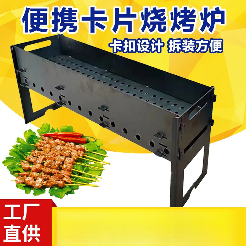 Oven Barbekyu Kompor Portabel Kartu BBQ Ekstra Tebal Rumah Tangga Dapat Dilepas Dilipat Luar Ruangan Arang di Lapangan