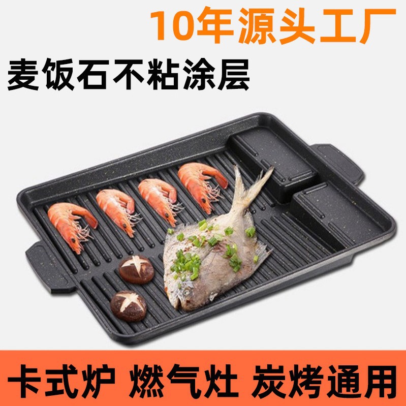 Batu Maifan Gaya Korea Tidak Lengket Mudah Membersihkan Nampan Pembersih Komersial Berkemah Outdoor Nampan Kartu Oven Barbekyu Piring Besi Oven Grosir