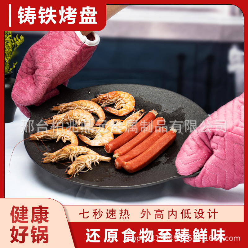 Piring Daging Panggang Tanpa Lapisan Besi Cor Piring Panggang Besi Cor Khusus Luar Ruangan Panci Panggang Rumahan Gaya Korea Panggang Sol Datar Tidak Lengket