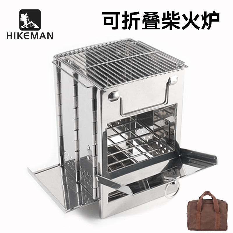 Kompor barbekyu luar ruangan lipat baja tahan karat persegi kompor kayu bakar piknik barbekyu berkemah kompor arang portabel