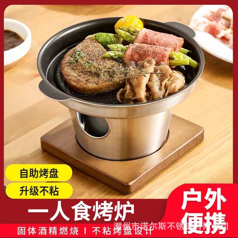 Jindele oven barbekyu tunggal alkohol luar ruangan 304 baja tahan karat tiga lapis baja piring barbekyu portabel
