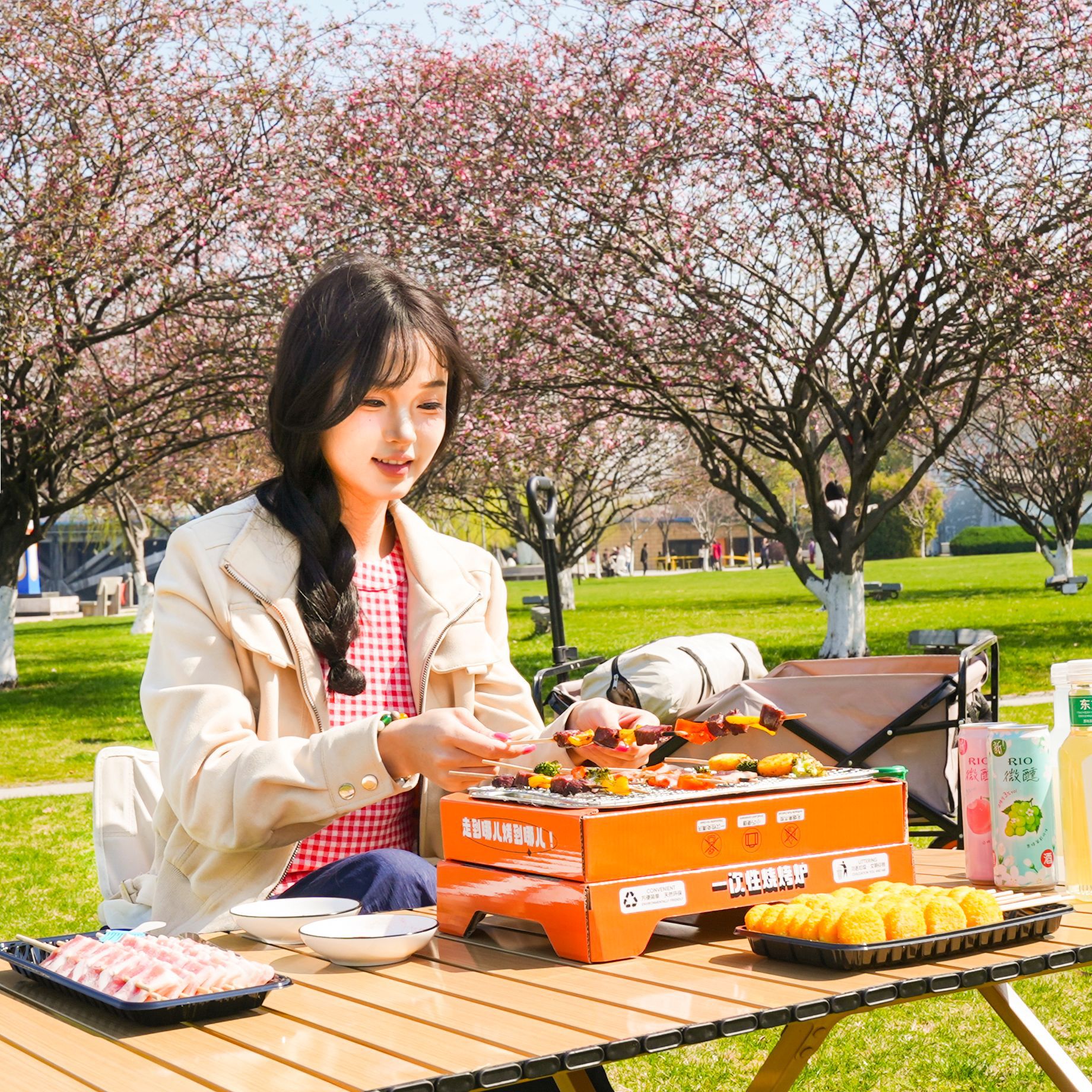 Panggangan luar ruangan panggangan portabel untuk membuat teh tanpa asap panggangan meja dapat dilipat panggangan arang barbecue lapangan