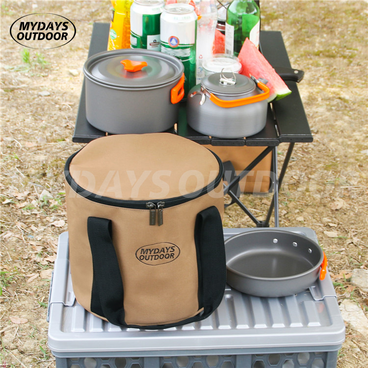 Tas panci Kemah portabel ukuran kecil, tas panci penyimpan panci Kemah portabel, kantong debu dan peralatan masak untuk luar ruangan
