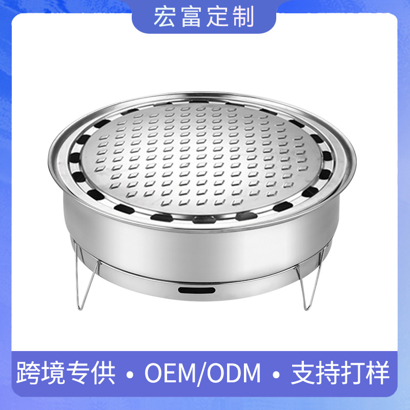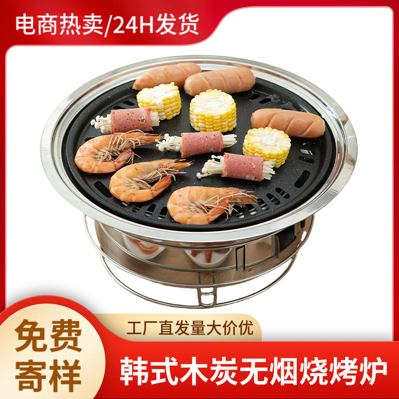 Oven arang barbeku Korea baja tahan karat, piring barbekyu oven arang berkemah luar ruangan bundar komersial rumah tangga kecil