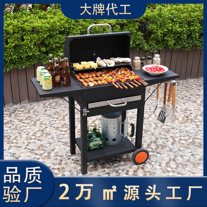 Barang Tersedia Barbekyu Rumah Tangga Ukuran Besar Villa Halaman Oven Barbekyu Rumah Tangga Arang Portabel Gaya Amerika Panggangan Luar Ruangan Besar