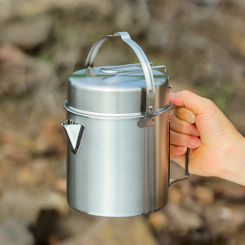 Panci gantung gaya baru untuk penggunaan di luar ruangan, panci baja tahan karat untuk membuat teh, panci multifungsi untuk memasak, panci sup, panci panas untuk berkemah.