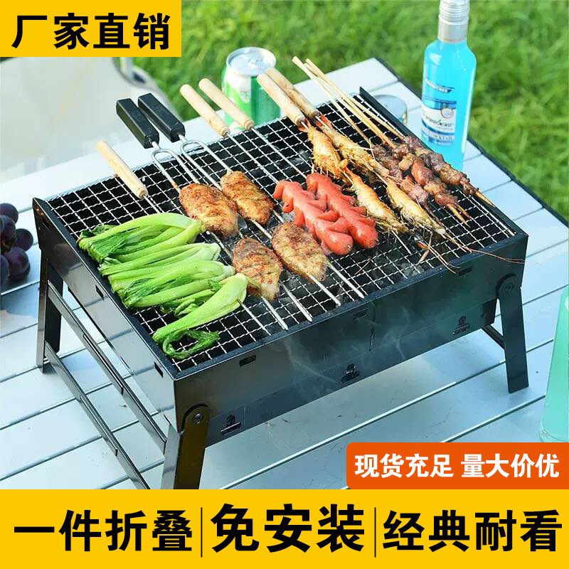 Pemanggang barbekyu, kompor arang luar ruangan rumah tangga lipat karbon ukuran kecil panggangan barbekyu set lengkap kompor baja hitam besar