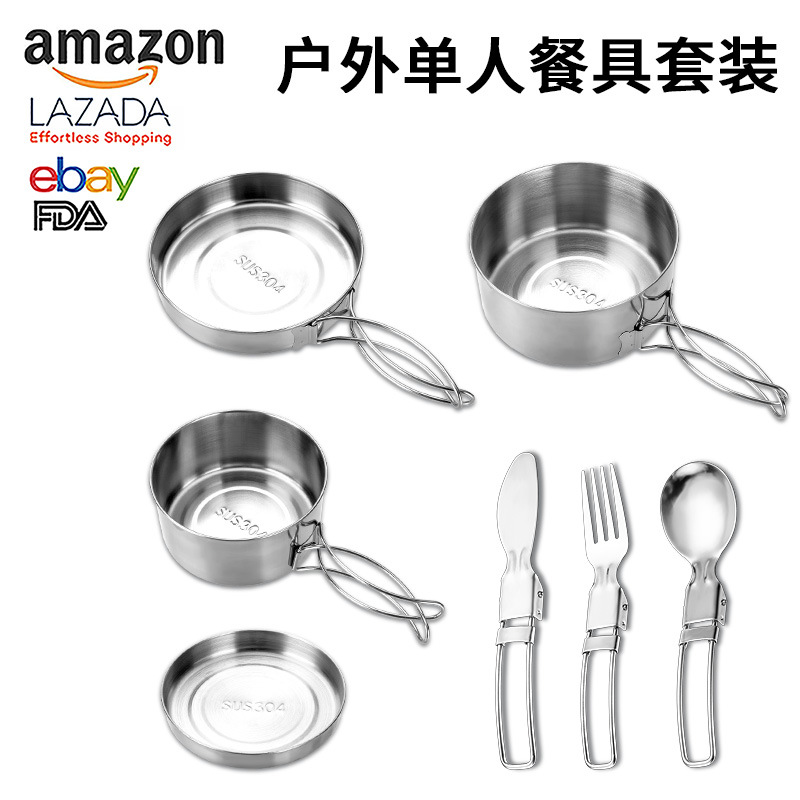 Set Panci 304 Panci Baja Tahan Karat Set 8 Potong Piknik Luar Ruangan Barbekyu Gaya Berkemah Peralatan Masak Peralatan Dapur Set Peralatan Makan Api Memasak
