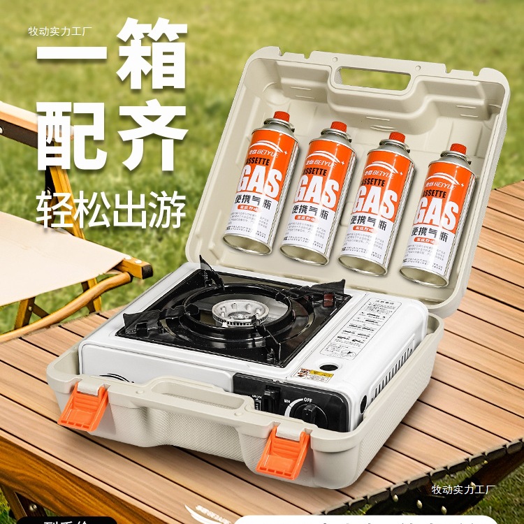 Kompor Kemah portabel, kompor gas luar ruangan, kompor berkemah, tahan angin, kompor kaset, gambar bintang lima Kaku