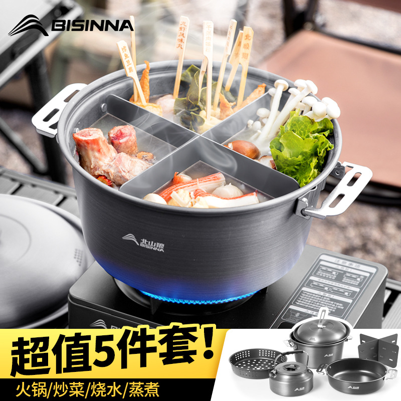 4L kapasitas besar Pot Pot panas ultra-ringan aluminium Aloi pot luar ruangan set berkemah barbekyu 3-5 orang berkemah peralatan masak grosir