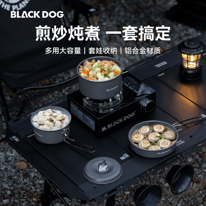 Blackdog Hitam Anjing Luar Ruangan Aluminium Alloy Set Panci Perlengkapan Berkemah Set Lengkap Peralatan Peralatan Masak Berkemah Portabel