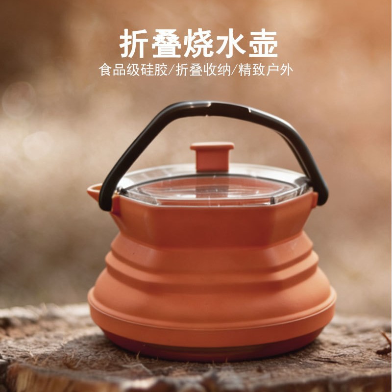 Ketel lipat silikon portabel, ketel berkemah mini dapat dibawa sendiri untuk perjalanan luar ruangan, panci mendidih mini