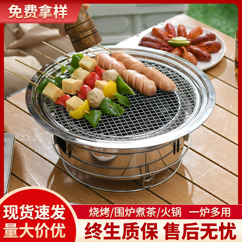 Panggangan barbeque mini luar ruangan, peralatan arang rumah tangga tusuk sate satu barbekyu kecil luar ruangan set lengkap kompor
