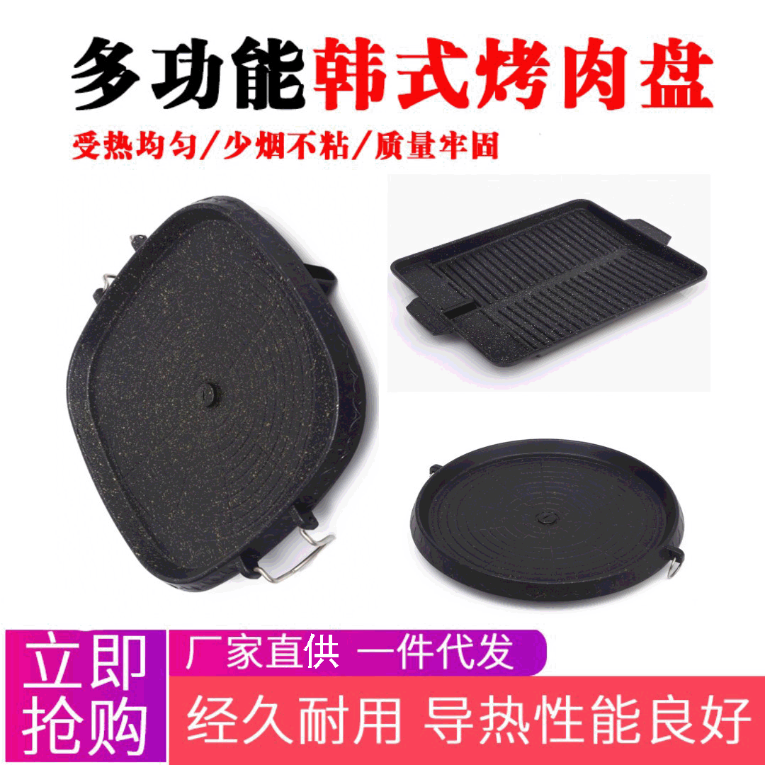 Panci barbekyu anti lengket, loyang besi gaya Korea, panggangan penggorengan, batu kartu maifan rumah tangga luar ruangan