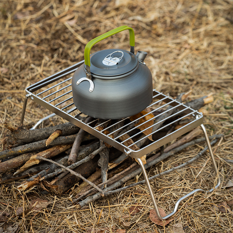 Pemegang kompor baja tahan karat diperpanjang luar ruangan panci portabel nampan panggang braket lipat penyimpanan panggangan