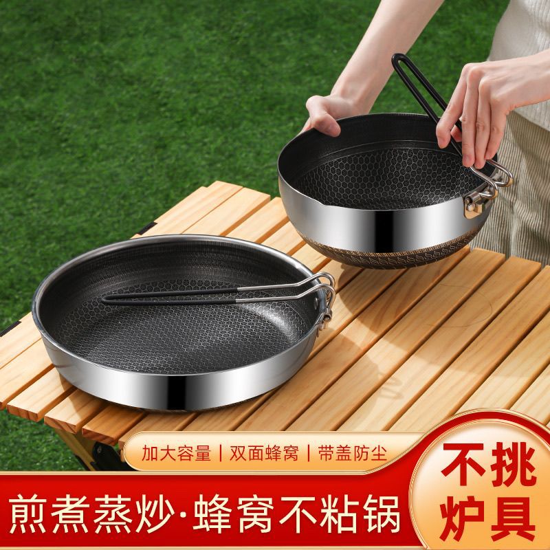 Panci Luar Ruangan Portabel 316L Panci Goreng Kecil Anti Lengket Honeycomb Stainless Steel