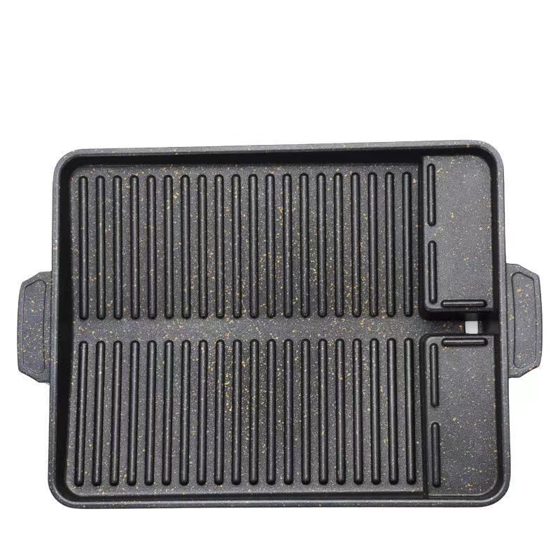 Piring barbekyu kebocoran minyak luar ruangan portabel, kompor kartu bebas asap rumah tangga, pelat barbekyu anti lengket, piring kue aluminium komersial