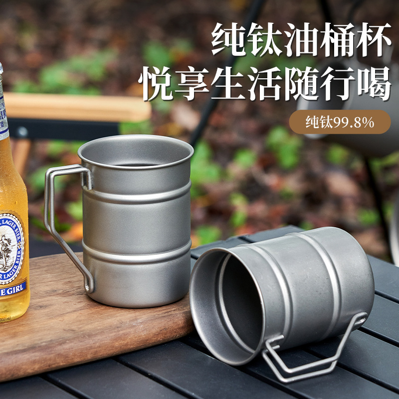 Cangkir ember minyak titanium murni, cangkir bir, cangkir air luar ruangan portabel ringan, cangkir berkemah, piknik, mulut lebar, cangkir titanium lapisan ganda