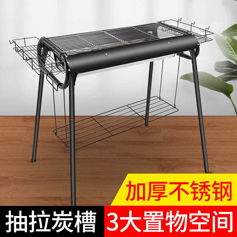 Barbekyu Rak Oven Barbekyu Arang Rumah Tangga Luar Ruangan Stainless Steel Tebal Lipat Oven Barbekyu Luar Negeri Penting