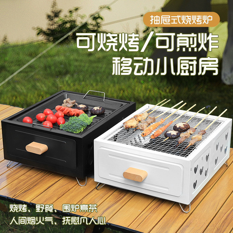 Barbecue Oven Barbecue Otomatis Terbalik Tipe Laci Tungku Persegi untuk Membuat Teh Oven Barbecue Luar Ruangan Portabel Rumah Tangga