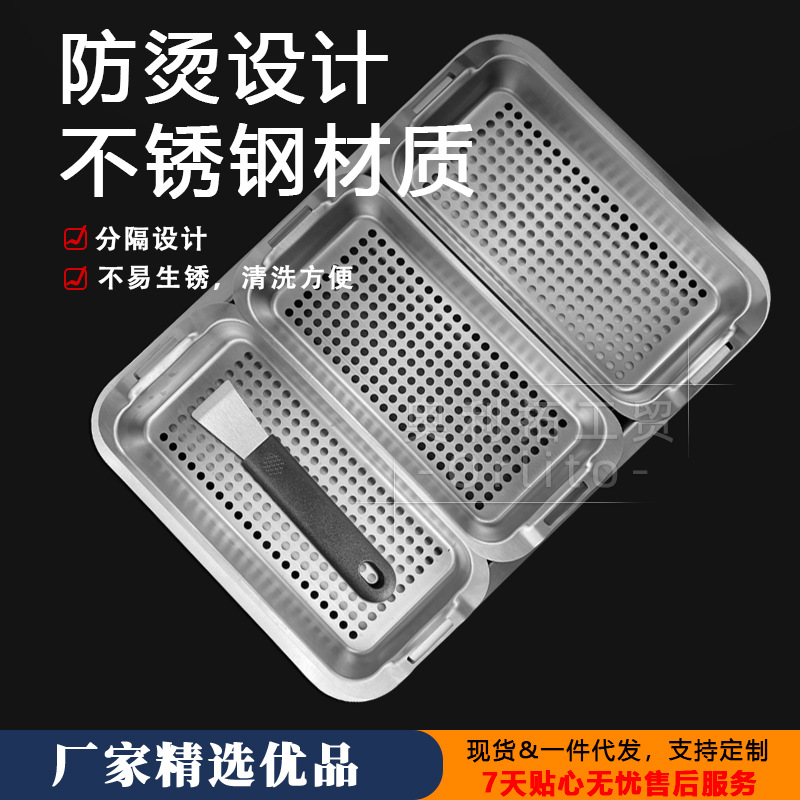 Setelan piring barbekyu, stainless steel luar ruangan kapasitas besar arang piring barbekyu sekop asap mulut dangkal 5 buah set