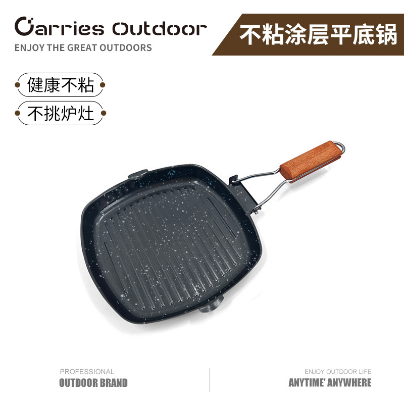 Panci tidak lengket untuk berkemah, luar ruangan, panci panggang piknik rumah tangga steak, peralatan masak lipat portabel untuk berkemah