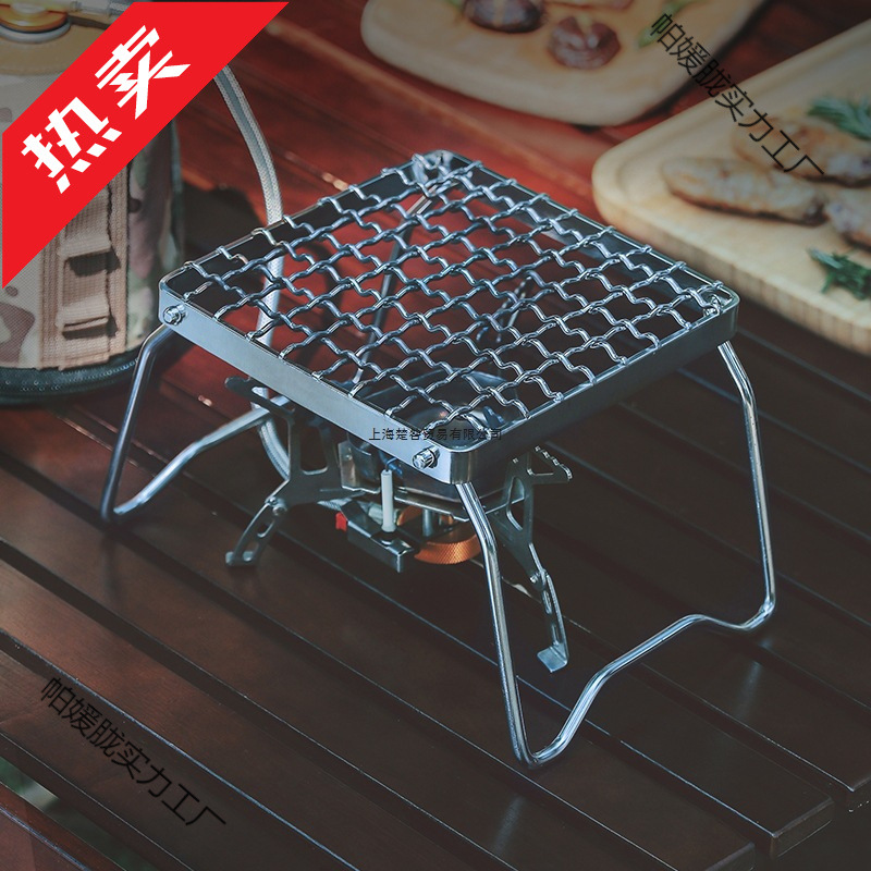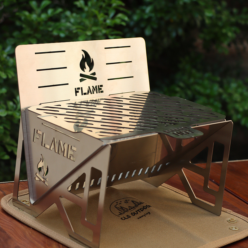 Braket Tungku Stainless Steel Luar Ruangan Braket Barbekyu Lipat Portabel Braket Tungku Gas Mini Ukuran Kecil