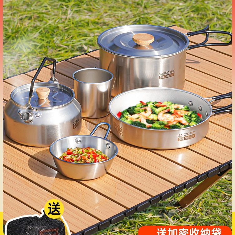304 Peralatan Panci Luar Ruangan Stainless Steel Peralatan Berkemah Peralatan Masak Kompor Kartu