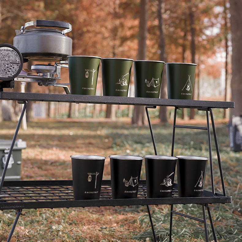 Mountain Fun Outdoor Camping Water Cup 304 Food Grade Stainless Steel Camping Barbekyu Portabel Bir Jus Kopi Teh