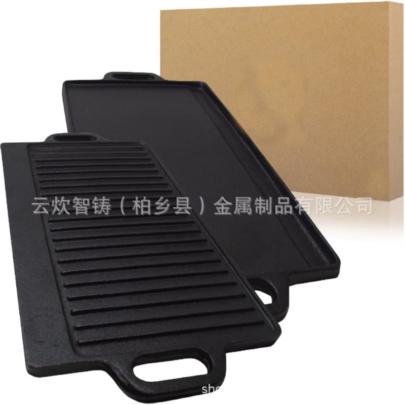 Supply Piring Teppanyaki Persegi Panjang Besi Cor Panggang Luar Ruangan Steak Gurita Panggang Dua Sisi