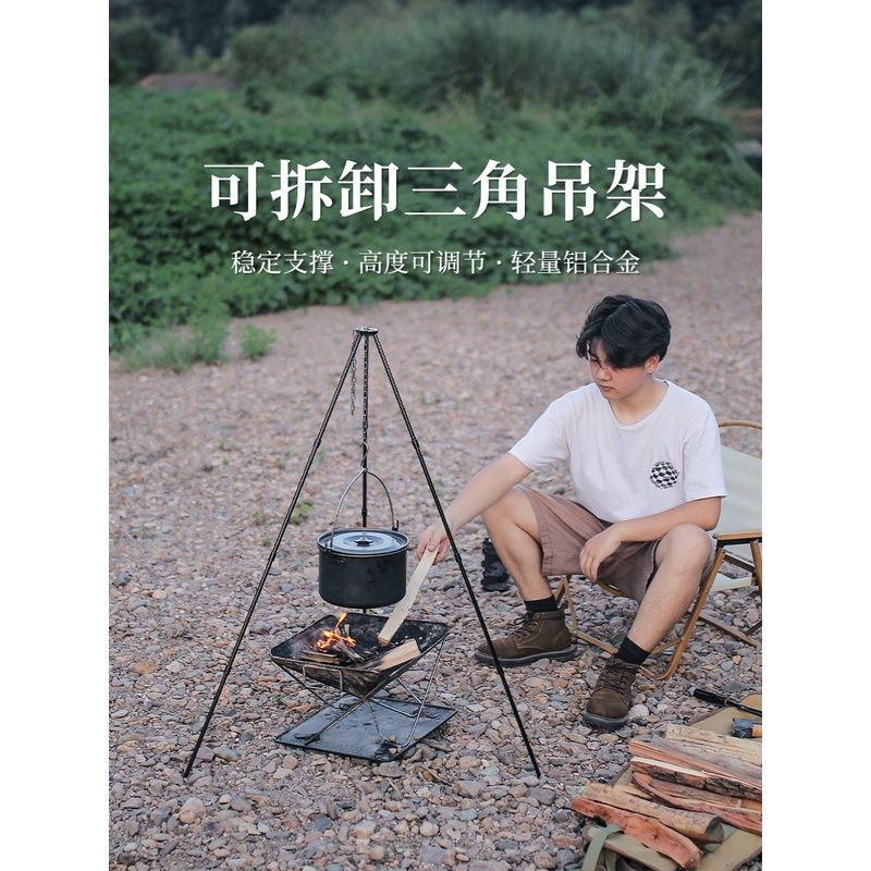 Perkemahan Panci Gantung Luar Ruangan Api unggun Tripod Panci Masak Liar Panci Bakar Camping Portabel Peralatan Masak Gantung Segitiga