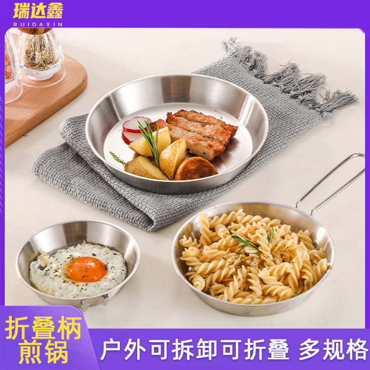 304 wajan penggorengan stainless steel dapat dilepas gagang lipat panci penggorengan mini anti lengket panci set telur goreng portabel untuk berkemah